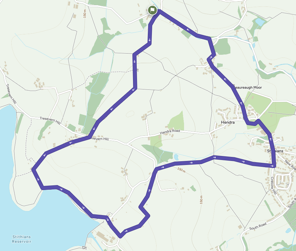 A circular, cross country hike from our glampsite to Stithians Reservoir, past the dam, into Stithians village and back to the glampsite.
